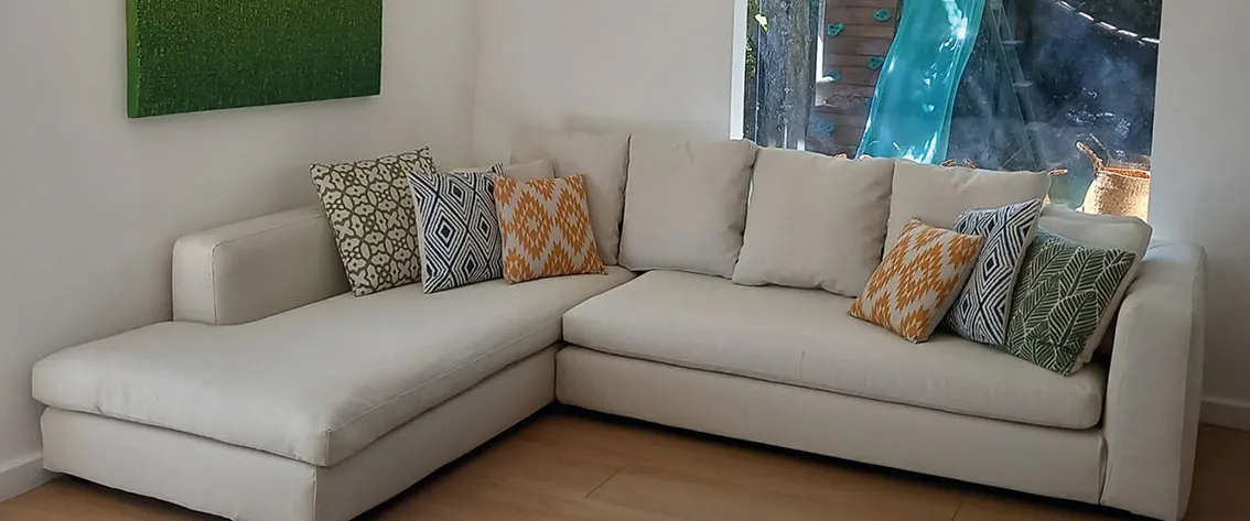 Usamos materiales de alta gama como el lino repelente al agua con diferentes texturas, vinil sintético (cuero tex o Ferro) y telas de alto rendimiento para garantizar la durabilidad de sus muebles.